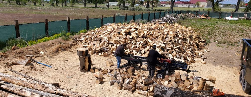 "A 4-person crew uses 3 trucks, 4 splitters, 6 chainsaws, and 3 trailers to deliver hundreds of cords of firewood every winter."